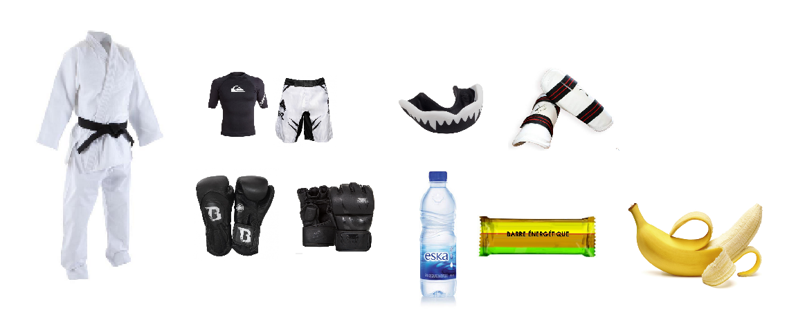 Toutefois, le protège dent, des protège tibias, une paire de gant de boxe, des mitaines de MMA, une bouteille d’eau et quelques encas ne sont pas obligatoires mais un petit plus …